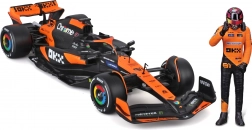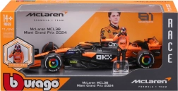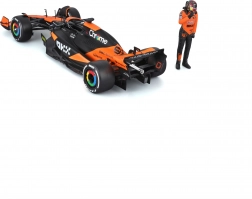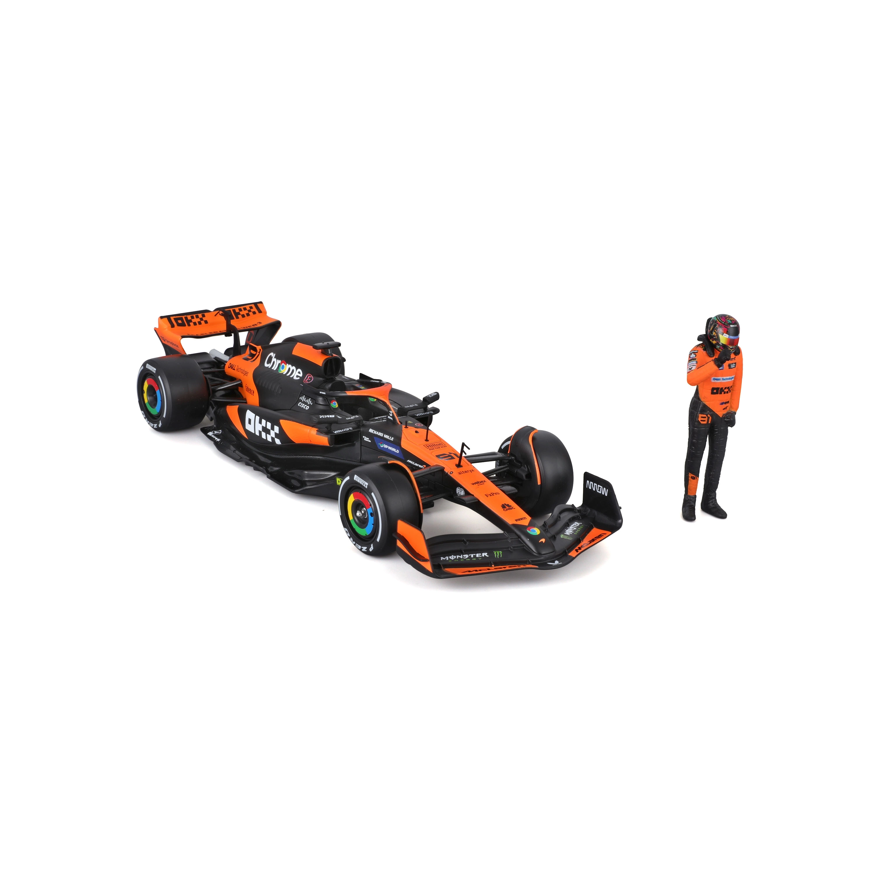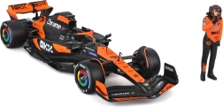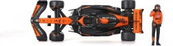 Nauwkeurige sponsorbedrukking, oranje‑zwarte kleurstelling en gedetailleerde vleugels, diffuser en halo voor een authentieke look van de McLaren MCL38.