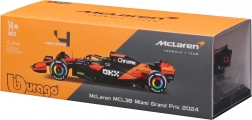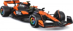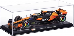 Verzamelmodel van de MCLAREN MCL38 op schaal 1:24 van Bburago, met realistische details van carrosserie, banden en cockpit. Inclusief harde beschermende vitrinekast voor stofvrij en veilig tentoonstellen – ideaal voor fans van F1 en coureur Lando Norris.