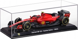 Het model is vervaardigd met aandacht voor realistische proporties en fijne details, inclusief slickbanden, racekleurstelling en het startnummer 55 van coureur Carlos Sainz. Inclusief een stevige beschermbox (hard case) die tegen stof beschermt en het tentoonstellen op een plank of in een vitrinekast vergemakkelijkt.