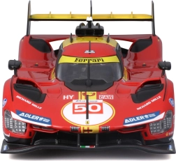 Racebestickering, nummer 50 en sponsorlogo’s benadrukken de authentieke look van het Ferrari 499P-model.