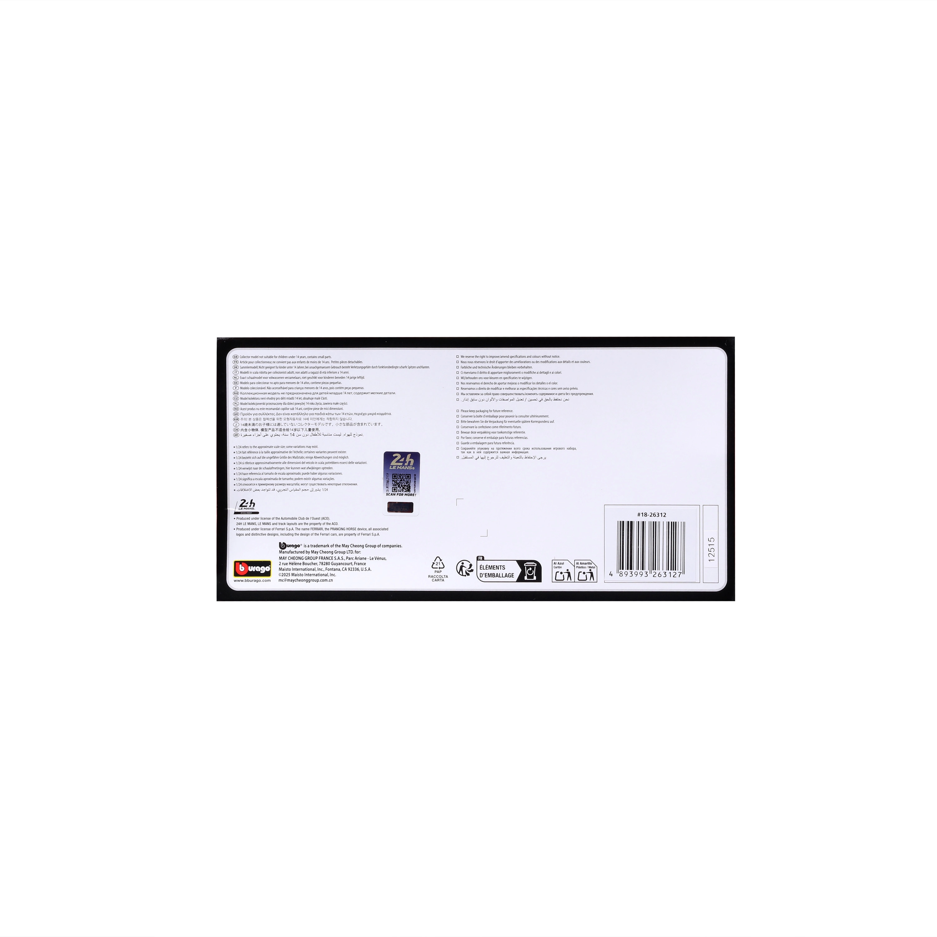 De auto is uitgerust met lageprofielbanden, heeft gedetailleerde verlichting, spiegels en cockpit en rolt soepel op zijn wielen. Het model wordt geleverd in een cadeauverpakking met venster, ideaal om tentoon te stellen zonder uit te pakken.