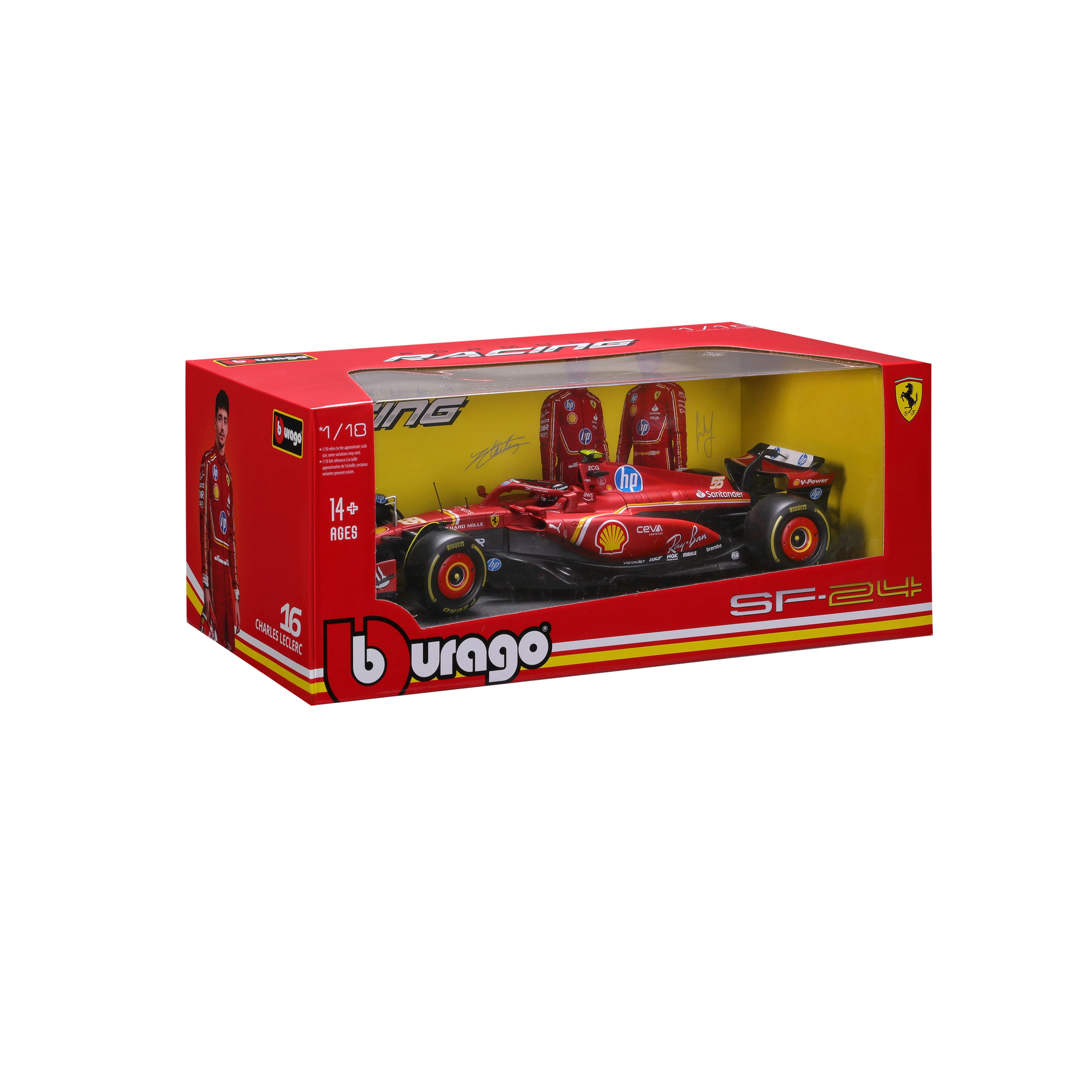 Ontdek de gedetailleerde replica van de Ferrari SF-24 eenzitter uit het seizoen 2024 in iconisch rood. Het model van Bburago biedt natuurgetrouwe verhoudingen, scherpe lijnen en hoogwaardige sponsorbedrukking. In de verpakking vind je ook coureur Carlos Sainz (#55), wat de authenticiteit bij elke presentatie versterkt.