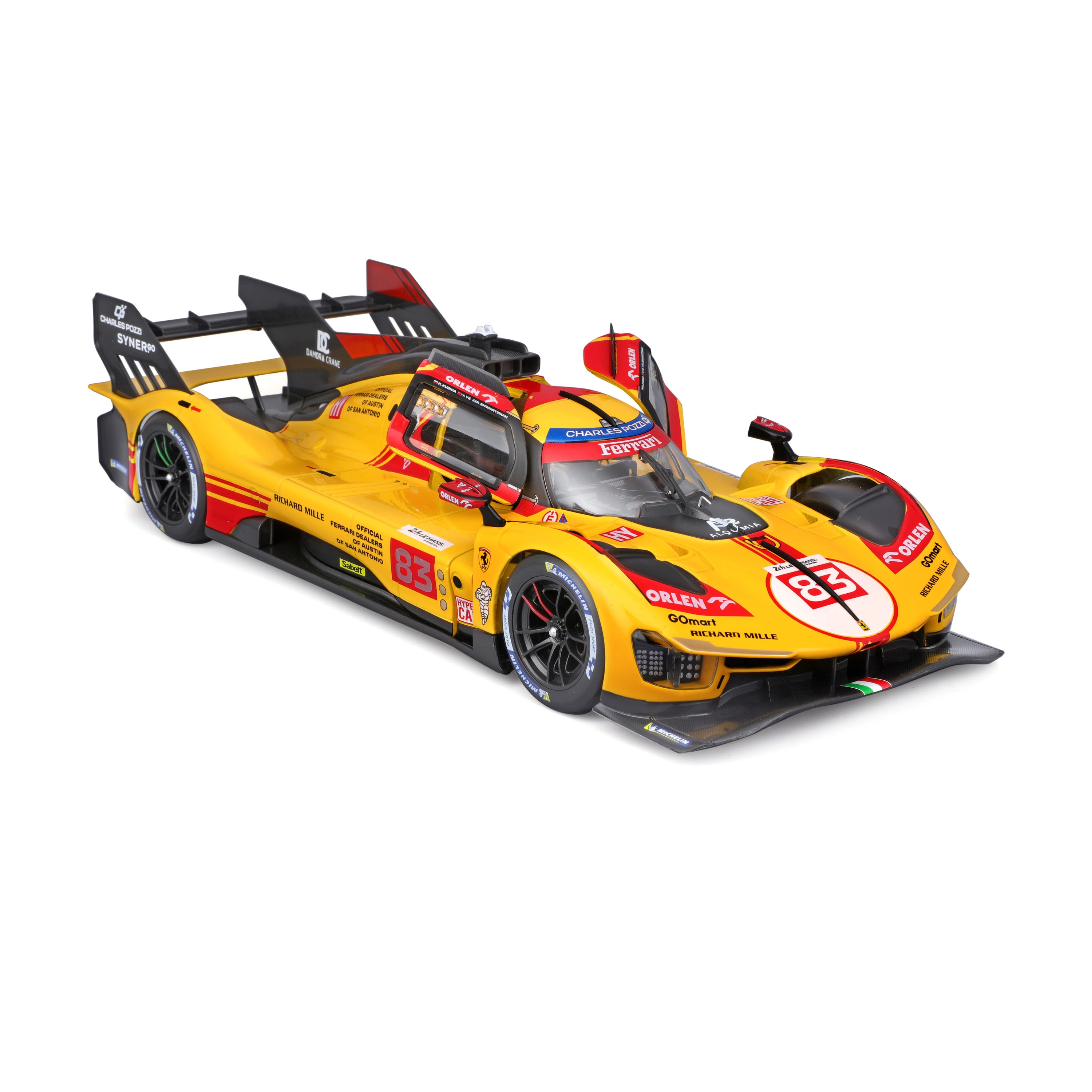 Ontdek het hoogwaardig uitgevoerde model van de Ferrari 499P in iconische geel‑rode kleurstelling met startnummer 83 van de legendarische race 24H Le Mans 2024. Metalen uitvoering met precieze afwerking, natuurgetrouwe aerodynamica en realistische remschijven benadrukken de authentieke look van deze racespecial.