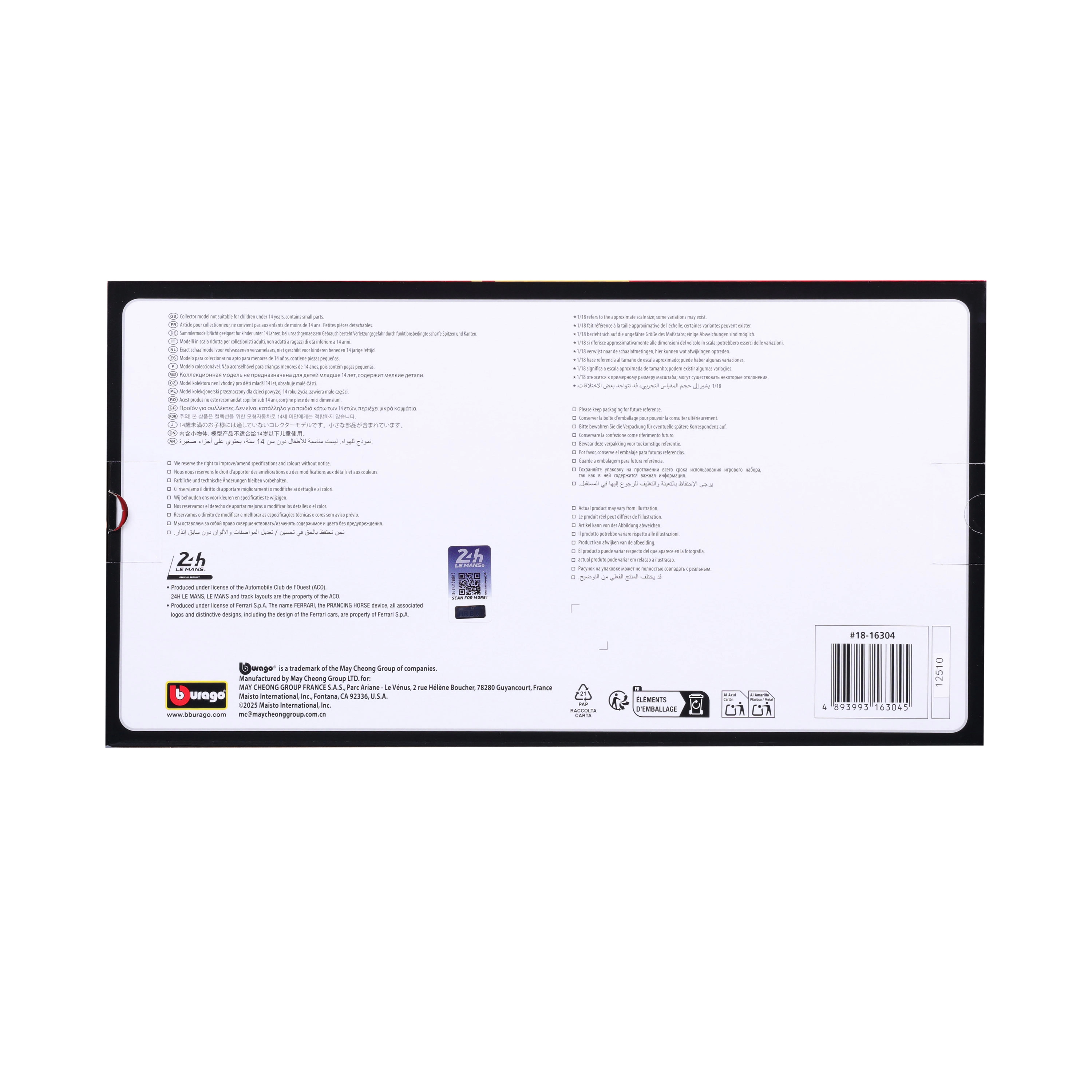 Dankzij de schaal 1:18 komen cockpitdetails, spoilers en diffuser volledig tot hun recht. Het model is ideaal voor verzamelaars, fans van endurance races en als representatief cadeau. De displayboxverpakking beschermt het model en maakt direct tentoonstellen mogelijk.