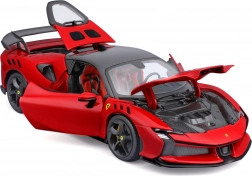 Dit rode model van de Ferrari SF90 XX Stradale van Bburago op schaal 1:18 biedt topafwerking van zowel exterieur als interieur. Je vindt er open aerodynamische elementen, een prominente vleugel, nauwkeurig gevormde koplampen en authentieke cockpitdetails inclusief sportstoelen.