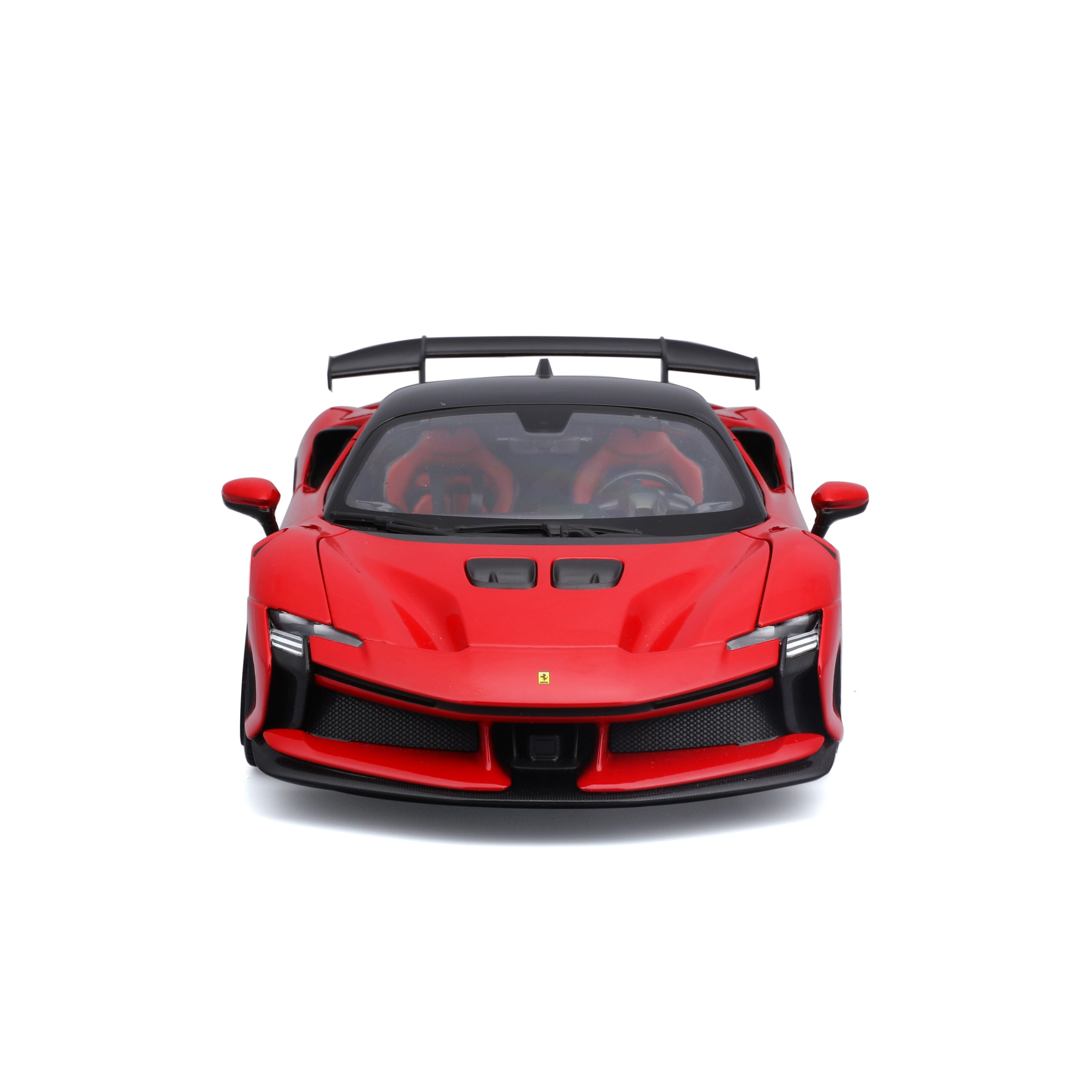 Aerodynamische elementen, een grote achtervleugel, nauwkeurige koplampen en sportstoelen zorgen voor een authentieke indruk van de echte SF90 XX Stradale.