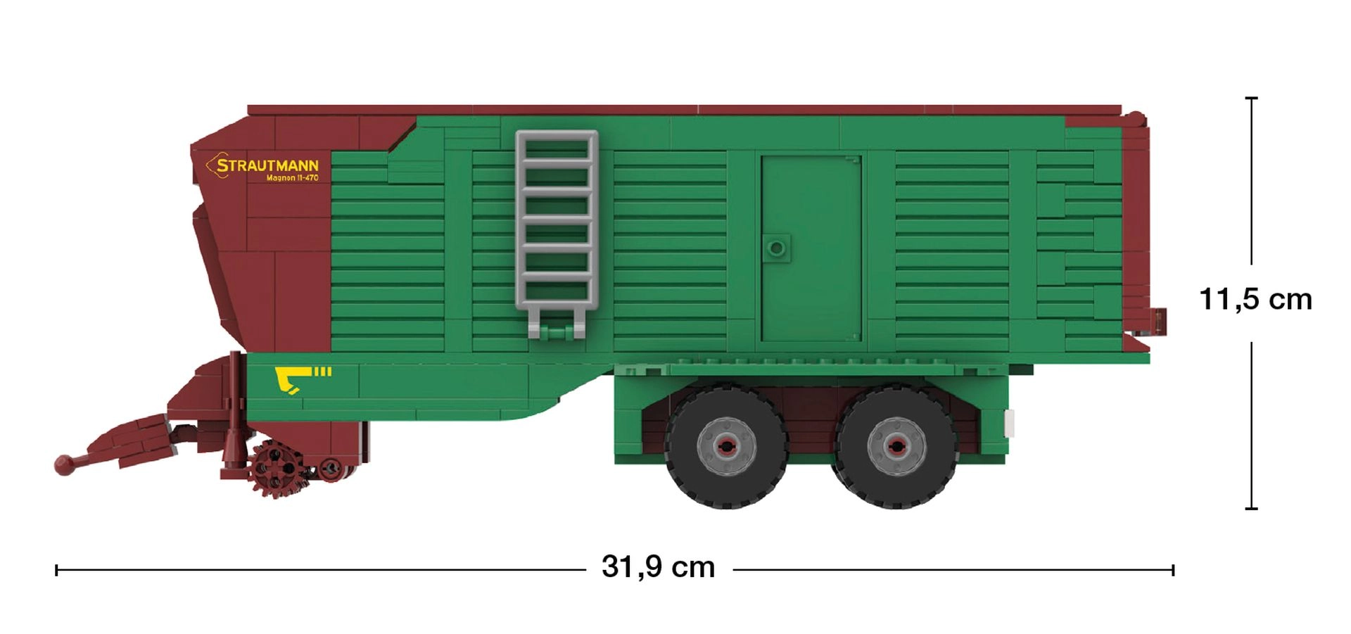 Deze gedetailleerde bouwset levert een realistisch model van de Strautmann Magnon 11-470, geïnspireerd op de echte machine. Na het bouwen heeft het model afmetingen van ca. 31,9 × 11,5 × 8 cm (l × h × b). De grotere onderdelen van de BRIXIES Plus-lijn zorgen voor comfortabel bouwen en hoge stabiliteit.