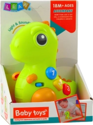 De schattige interactieve dinosaurus is een kleurrijk speelgoed voor de allerkleinsten dat motiveert tot bewegen en ontdekken. Hij biedt lichteffecten, vrolijke melodietjes en geluiden, rijdt op wieltjes en dankzij gekleurde knoppen met cijfers leert hij kleuren, vormen en tellen. Het lichte ontwerp, de afgeronde vormen en de veilige uitvoering zijn ideaal voor kinderen vanaf 6 maanden.