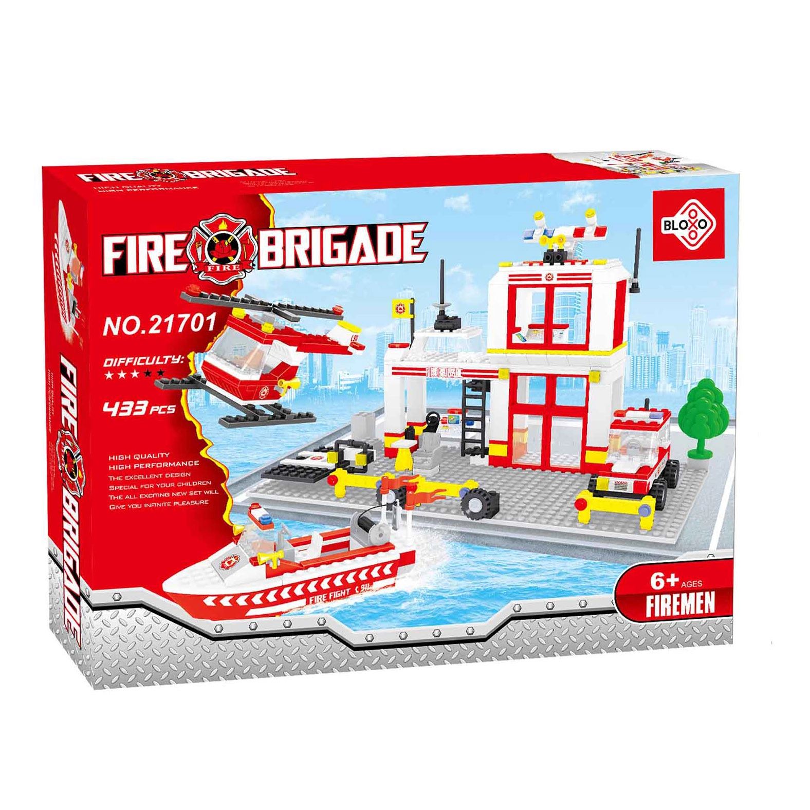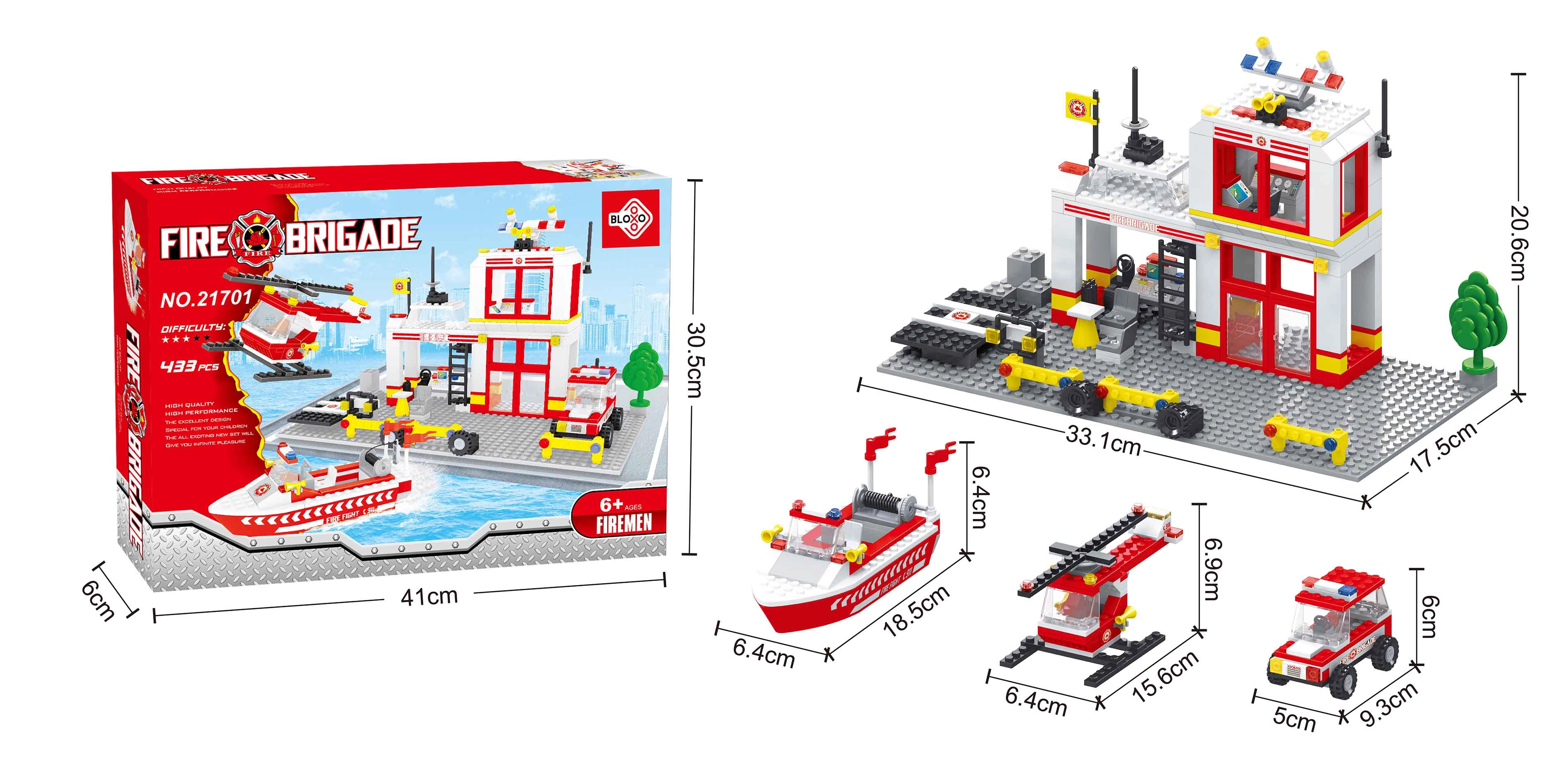 Bouw je eigen brandweerkazerne met faciliteiten voor interventieteams, een helikopter en een reddingsboot en ruk in een oogwenk uit naar een brand. De onderdelen zijn makkelijk te verbinden en laten kinderen verschillende bouwwerken en voertuigen naar eigen fantasie maken.