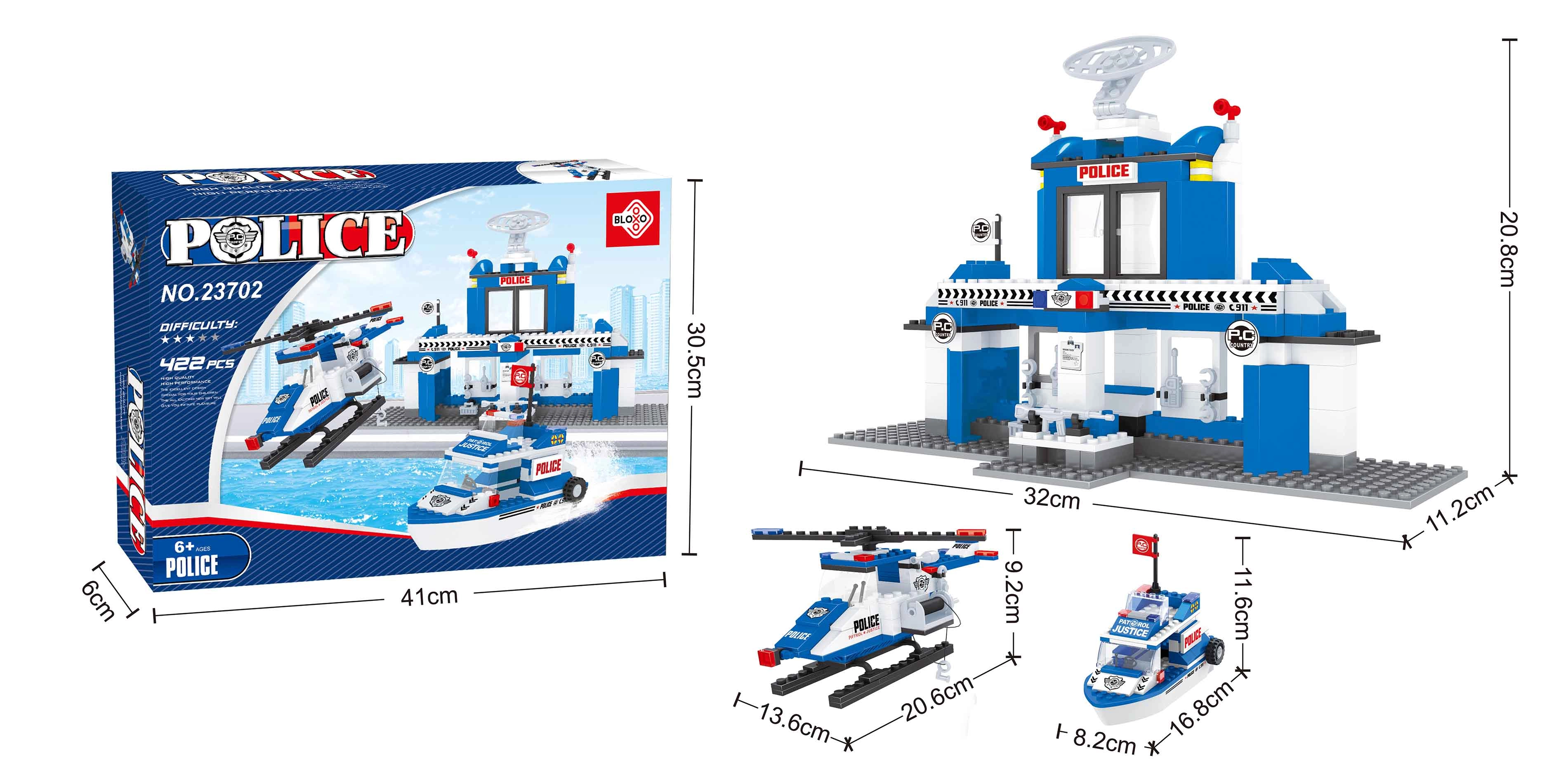 Deze creatieve politiebouwset biedt kinderen alles wat ze nodig hebben om hun eigen politiepost te bouwen – van een modern station tot een patrouilleboot en een helikopter met draaiende rotors. Met 370 nauwkeurig vervaardigde onderdelen oefenen kinderen geduld en vaardigheid en genieten ze van uren fantasierijk speelplezier.