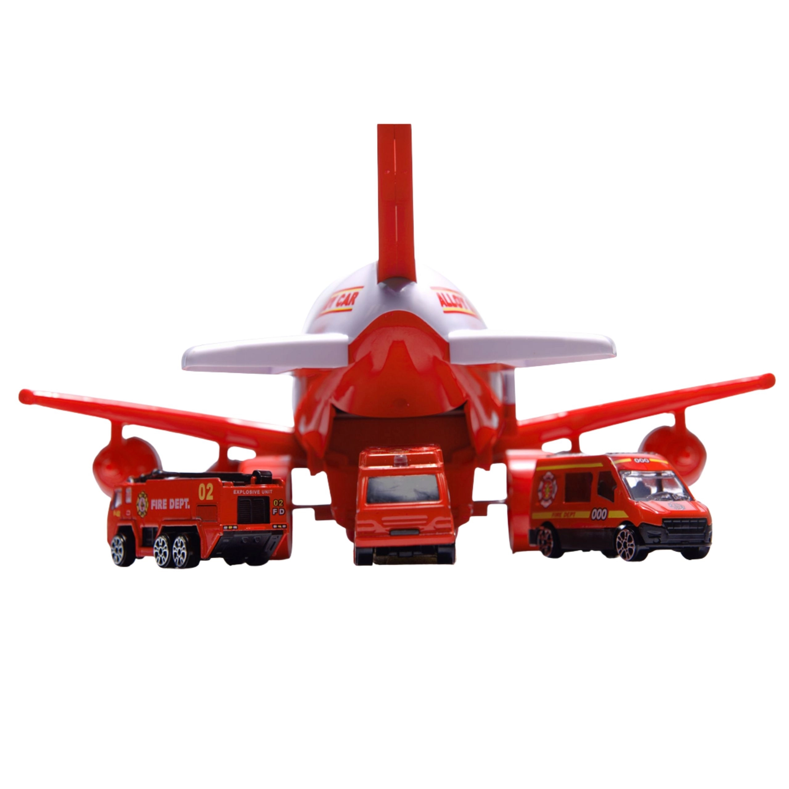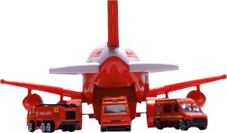 Prikkel de verbeelding met het WOOPIE brandweervliegtuig dat tevens dient als praktische transporter voor mini-voertuigen. De openende romp en zijdeuren zorgen voor snel inzetten van de bemanning, terwijl de neerklapbare laadklep het uitladen vereenvoudigt. Vier knoppen starten realistische sirenes en knipperende LED's, zodat de actie net echt lijkt.