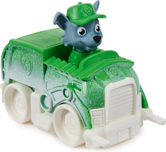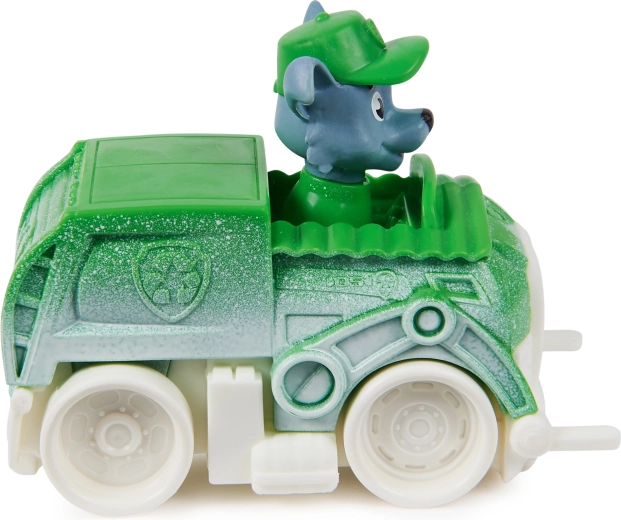 Dit compacte voertuig van Rocky uit de serie PAW Patrol is ideaal voor jonge fans die van winterse avonturen houden. De groene recyclingtruck met sneeuweffect biedt authentieke details, waaronder voorvorken voor het verplaatsen van lading en een stevig vastgezet Rocky-figuurtje met helm. De speelgoedauto is ontworpen voor push-along rijden – gewoon een duwtje geven en op pad.