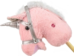 Deze elegante roze Hobby Horse betovert jonge ruiters met de zachte pluche kop, de zilverkleurige “hoorn” en de comfortabele grip. Bij het indrukken van de knoppen op het hoofd klinken authentieke galop- en hinnikgeluiden, die het paardenrollenspel nog realistischer maken. De stevige houten stok zorgt voor stabiliteit en eenvoudige bediening, ook voor de allerkleinsten.