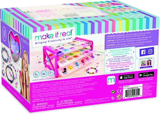 Alles wat je nodig hebt bij de hand: 2600 kralen voor eindeloze combinaties, 8 gekleurde gewaxte koorden van 8 m elk en een elastisch koord van 4 m. De set is ideaal om thuis te knutselen, voor knutselclubs en als cadeau voor jonge sieradenmakers.