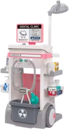 Deze tandartsset in de vorm van een stabiele, verrijdbare wagen biedt kinderen alles wat ze nodig hebben om een bezoek aan de tandartspraktijk na te bootsen. Dankzij het licht in de thermometer en de zachte operatielamp voelt het spel authentiek en motiverend aan. Het kaakmodel helpt de juiste hygiëne uit te leggen en eventuele angst voor de tandarts te overwinnen.
