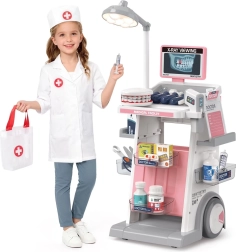 Ontdek creatief tandarts-spelen met deze mobiele wagen voor kleine dokters. Hij biedt 26 accessoires, een brandende lamp, een kaakmodel en een röntgenscherm voor realistisch en toch veilig spel dat de fijne motoriek, verbeeldingskracht en gezonde mondzorggewoonten ontwikkelt.