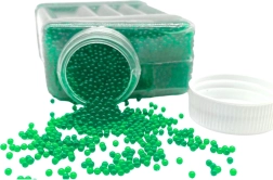 Deze watergelkralen zijn ideaal als vulling voor gelpistolen en ook als sensorisch materiaal voor spel of decoratie. Strooi ze in een bak en voeg ruim water toe – na 3–4 uur nemen ze water op en groeien ze tot een diameter van 7–8 mm. Om de elasticiteit te behouden kun je ze bewaren in een afgesloten container met een beetje water.
