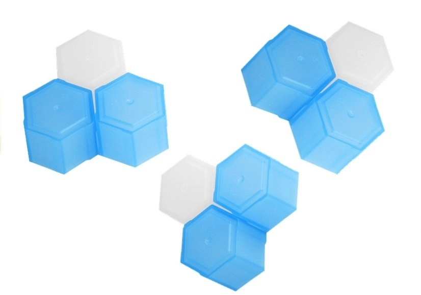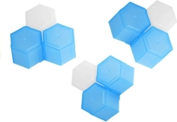 Zeskantige basis met witte en blauwe blokjes die snel in elkaar te zetten zijn en stevig blijven zitten. Ideaal voor herhaald spelen en competitie.
