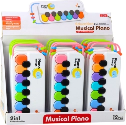 Ontdek de vreugde van muziek met een compacte kinderpiano die motiveert tot spel met gekleurde toetsen en geluiden bij elke aanslag. De lichte constructie, praktische lus met kralen en ergonomische vorm zorgen voor makkelijk dragen en comfortabel vasthouden. De piano ondersteunt de ontwikkeling van de fijne motoriek, oog-handcoördinatie en waarneming van kleuren en ritme.