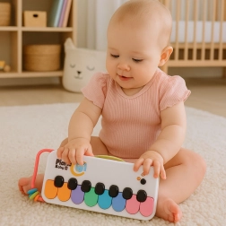 Perfect als eerste muziekspeeltje – duurzaam, eenvoudig te bedienen en geschikt voor kinderen vanaf jonge leeftijd. De gekleurde toetsen met zwarte knoppen nodigen uit tot het ontdekken van klanken en creatief spel, thuis, op de peuterspeelzaal of onderweg.