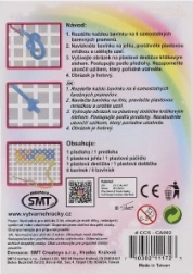 - Kunststof plaat/frame, papieren patroon, naald, 6 garens