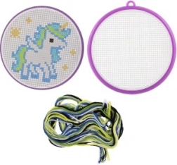 Ontdek de magie van handwerken met deze kruissteek borduurset met een eenhoorn-motief. Ideaal voor beginners en kinderen vanaf 6 jaar – bevat alles wat je nodig hebt: een frame, patroon, naald en 6 gekleurde garens voor een makkelijke en leuke start met borduren.