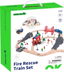 Ontdek de rijk uitgeruste houten treinspeelset met brandweer-thema, met maar liefst 70 onderdelen voor uren creatief speelplezier. Inclusief houten rails, moderne trein met wagon, brandweerkazerne, brandweerauto, ambulance, brug, tunnels, borden, verkeerslichten, bomen en poppetjes. Hoogwaardig hout, niet-giftige verven en afgeronde randen zonder scherpe delen zorgen voor veilig spel voor kinderen vanaf 3 jaar.