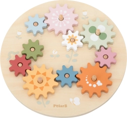 Het plaatsen van tandwielen op de pinnetjes, het verbinden van overbrengingen en draaien stimuleert oog-handcoördinatie en de ontwikkeling van de fijne motoriek.
