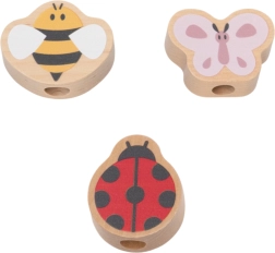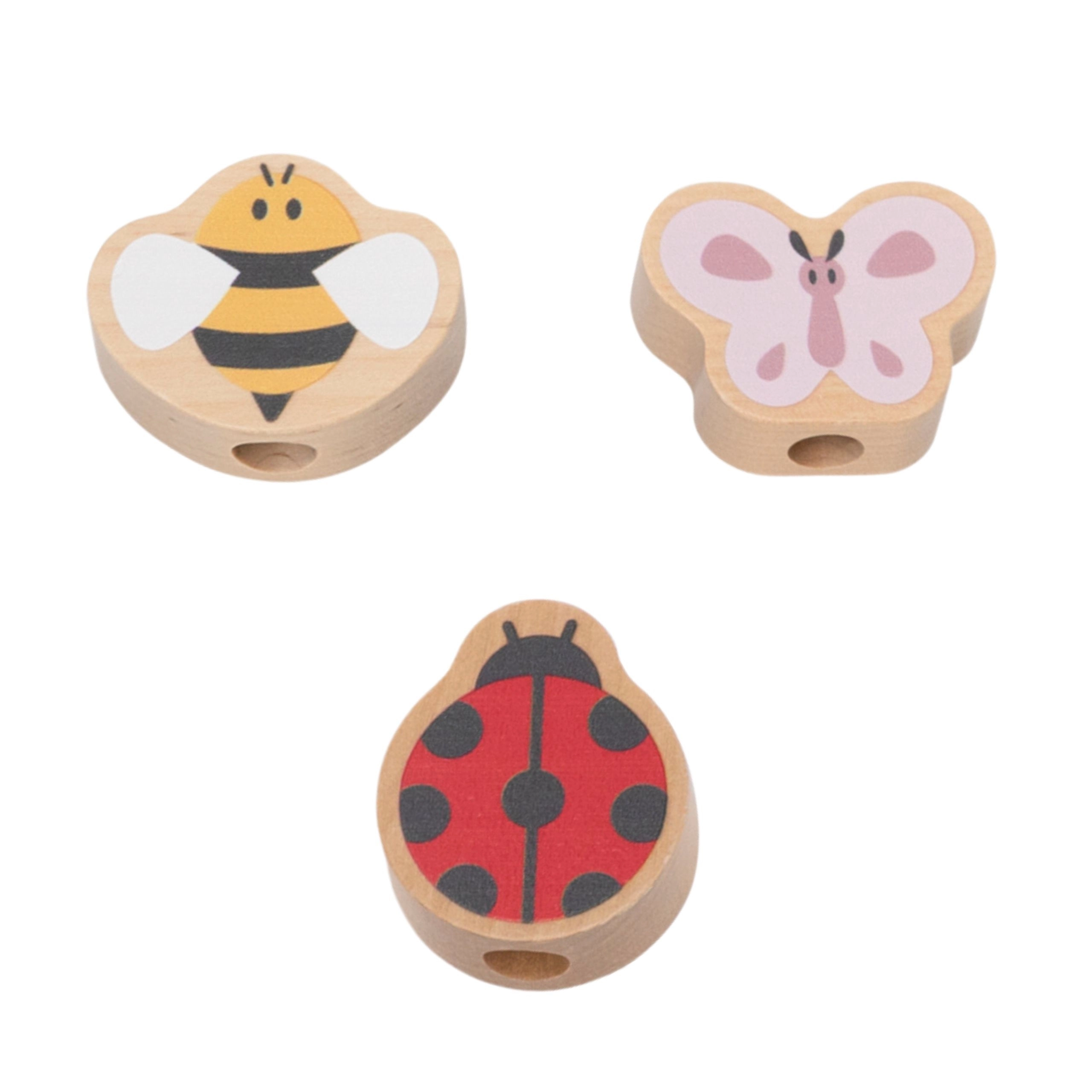 Deze kwaliteitsvolle houten speelgoedset is ontworpen voor kleine ontdekkers vanaf 18 maanden. Kinderen leggen en verbinden tandwielen op pinnetjes zodat ze in elkaar grijpen en bij het draaien allemaal tegelijk bewegen. Zachte pasteltinten, motieven van vlinder, lieveheersbeestje en bij en een gladde afwerking nodigen uit tot veilig en betekenisvol spel.