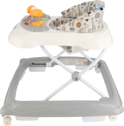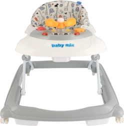 De BABY MIX loopwagen is ideaal voor kinderen vanaf 6 maanden. Dankzij de comfortabele, ergonomisch gevormde zitting ondersteunt hij de juiste houding van de wervelkolom, terwijl de brede basis en het speciale kantelbeveiligingssysteem de veiligheid vergroten bij de eerste pogingen tot zelfstandig bewegen. De voorste draaibare siliconen wieltjes draaien 360° en beschadigen de vloer niet; de achterste rubberen wieltjes zorgen voor stabiliteit.