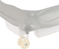 Voorste siliconen wieltjes die 360° draaien beschadigen de vloer niet, de achterste rubberen wieltjes zorgen voor extra stabiliteit. Een speciaal systeem voorkomt kantelen.