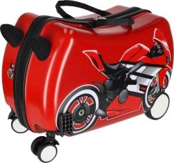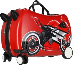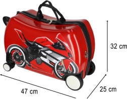 Een leuke en praktische reisgenoot: deze kinderkoffer met motorfietsmotief combineert een rij-speeltje en cabinebagage in één. Dankzij de vier stille wielen, lichte constructie en de afneembare schouderriem kunnen kinderen hem makkelijk duwen, trekken of dragen. Het slijtvaste hardshell-materiaal ABS+PC beschermt spullen onderweg en het volume van 30 liter biedt plek voor alles wat nodig is.