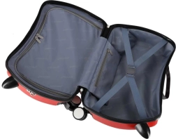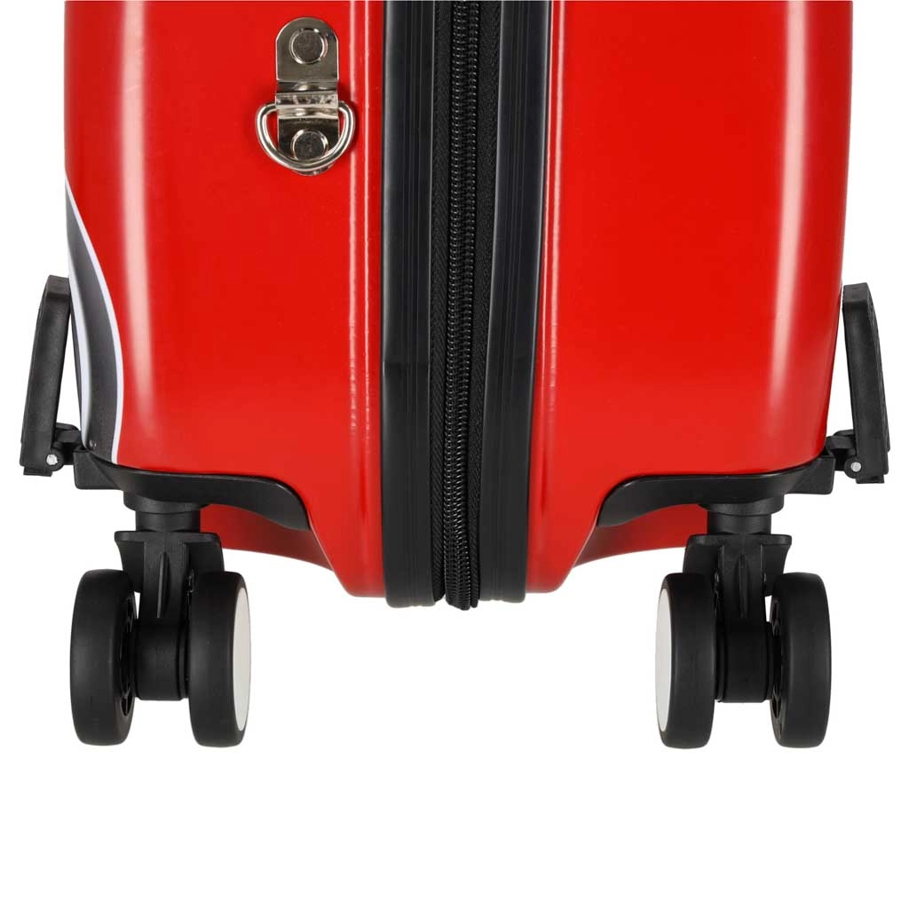 De lichte en duurzame hardshell ABS+PC weerstaat stoten en intensief gebruik door kleine reizigers. Het interieur biedt een ritsverdeler, kruisriemen en een praktisch ritsvak voor overzichtelijke opslag van kleinigheden. De koffer kan in de hand worden gedragen, over de schouder met de afneembare riem (130 cm) of comfortabel gerold op de wieltjes.
