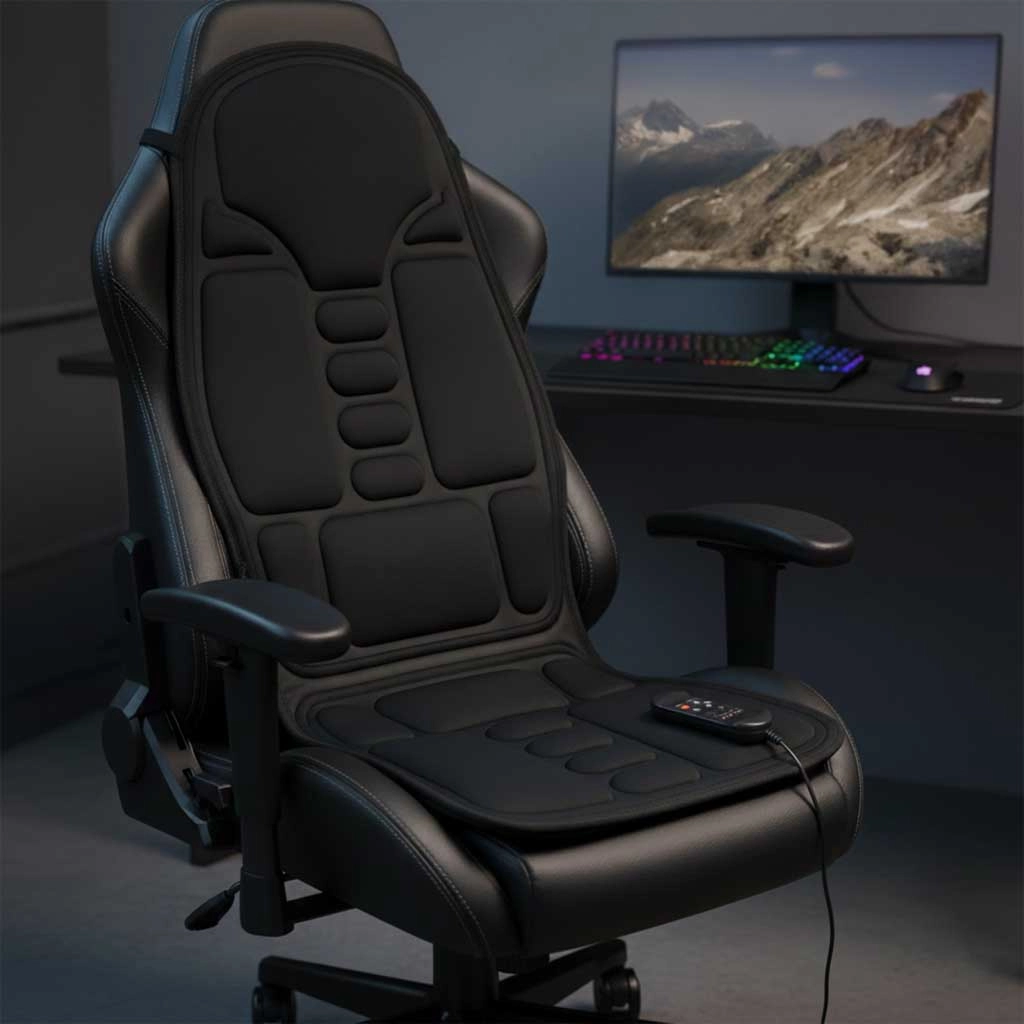 Dit comfortabele massagezitkussen biedt gerichte vibratiemassage voor rug en dijen en ondersteunt dankzij de geïntegreerde verwarming het opwarmen van de spieren. Eenvoudige bevestiging met elastische banden zorgt voor stabiliteit op een bureaustoel, gamestoel of autostoel.