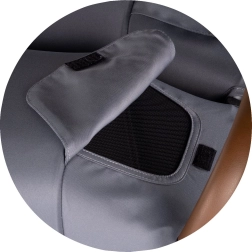 Afzonderlijk verstelbare rugleuningen en voetsteunen, vijfpuntsgordels met zachte padding en afneembare beugels van ecoleer.