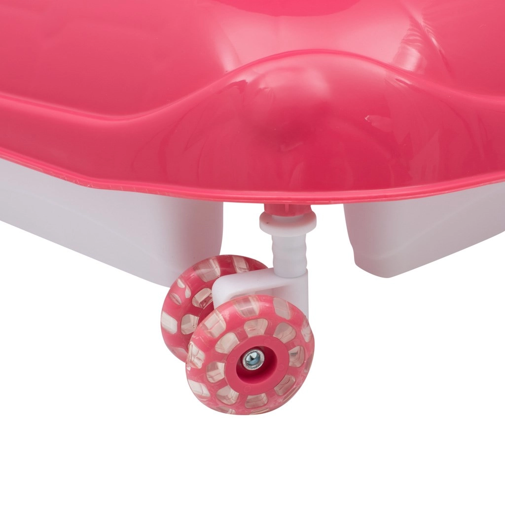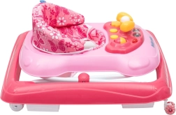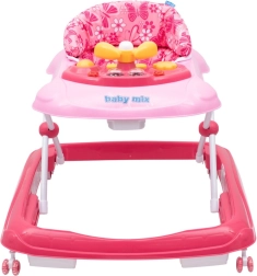 Het Baby Mix loopstoeltje in het roze is een ideale hulp voor actieve baby’s vanaf 6 maanden. Dankzij de comfortabele zitting met correcte rugondersteuning en de mogelijkheid tot hoogteverstelling groeit het mee met je kind. De voorste siliconen wieltjes met 360°-draaifunctie zorgen voor een soepele en stille beweging zonder de vloer te beschadigen.