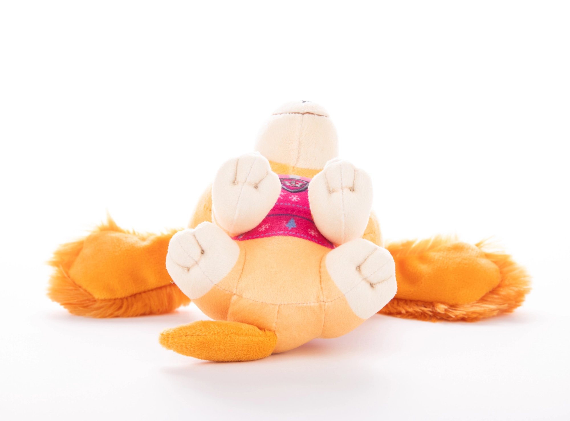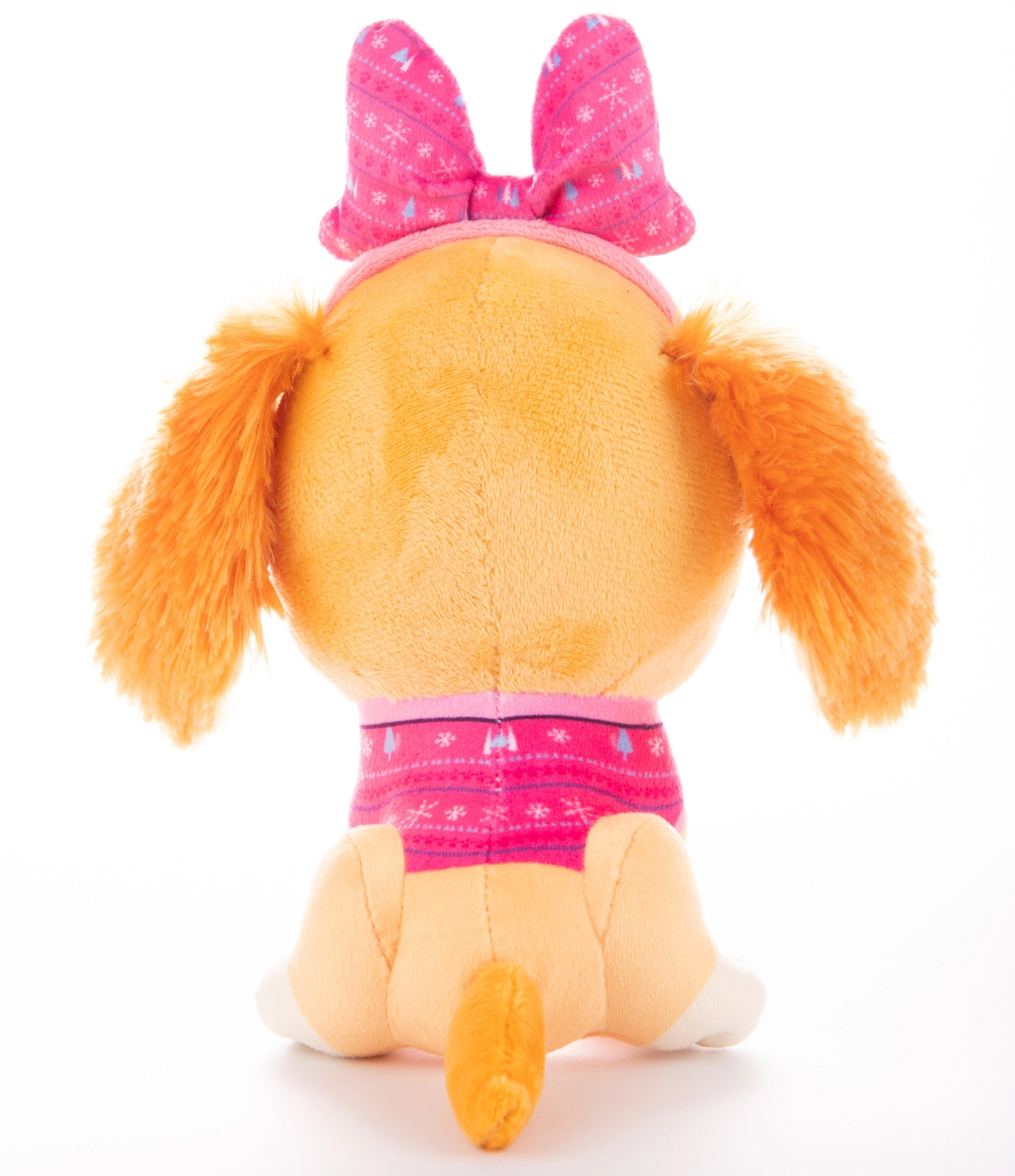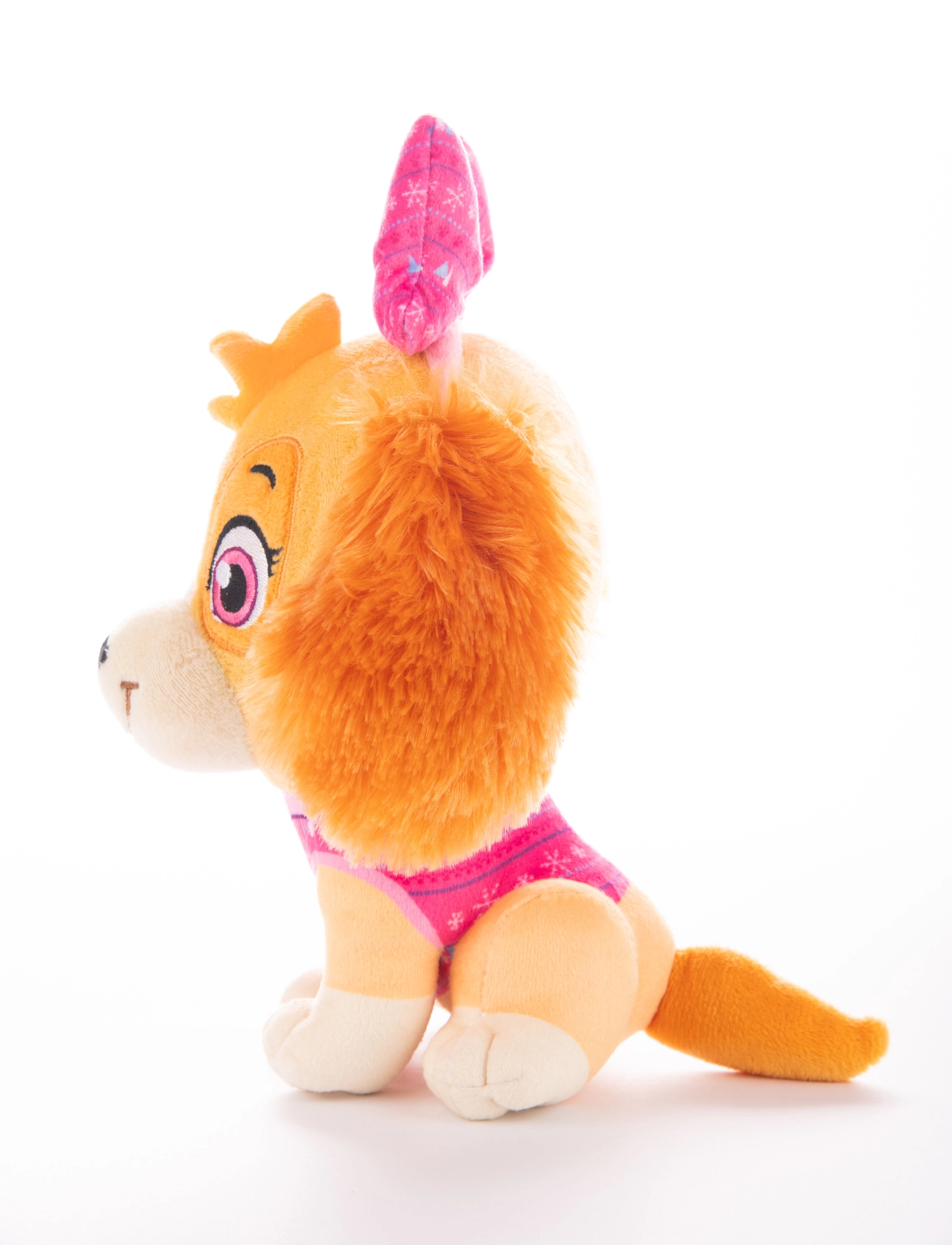 Het zachte oppervlak, geborduurde ogen en glimlach en zachte oortjes zorgen voor veilig en prettig knuffelen. Skye is ideaal als kerstcadeau en als het hele jaar door speelkameraadje voor PAW PATROL-fans.