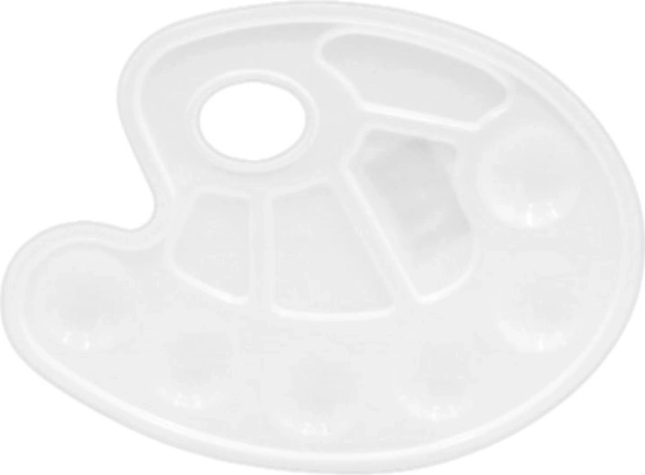 Praktische palet voor schilderen met acryl, plakkaatverf en aquarel. Biedt meerdere uitsparingen voor het mengen van kleuren, is licht, ligt goed in de hand en is eenvoudig te reinigen – ideaal voor scholieren, hobbykunstenaars en beginnende schilders.