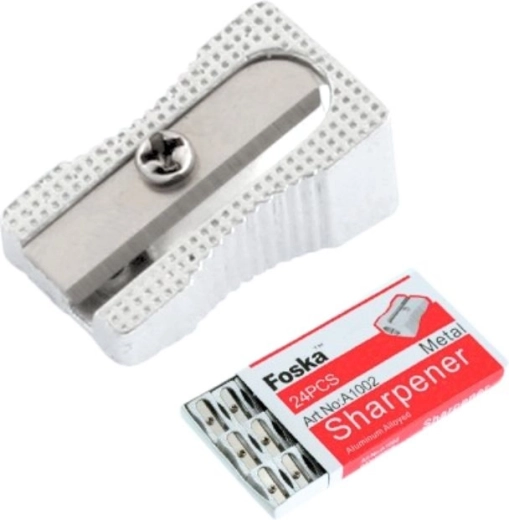 De metalen puntenslijper FOSKA is een klassieke en betrouwbare keuze voor school en kantoor. Biedt precies en schoon slijpen, een scherp mes zonder het breken van de stift en een duurzame metalen behuizing voor een lange levensduur. Geschikt voor potloden met standaard diameter.