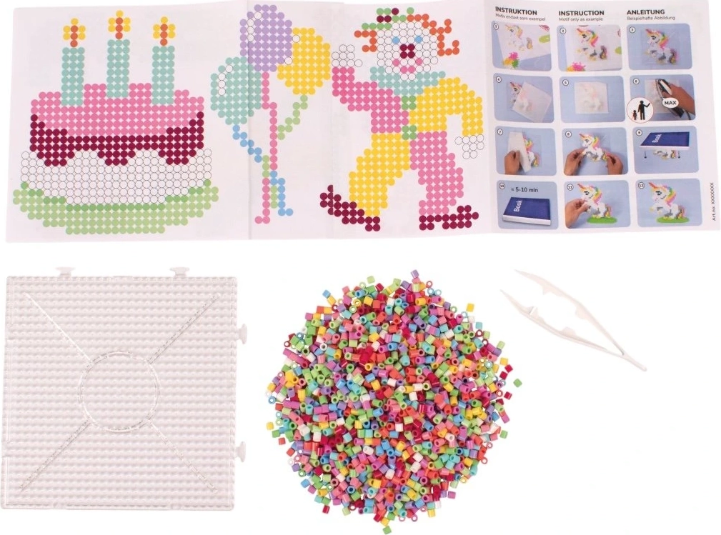 - 12.000 stuks strijkkralen, vierkant pegboard, kleurrijke voorbeelden, strijkpapier, pincet