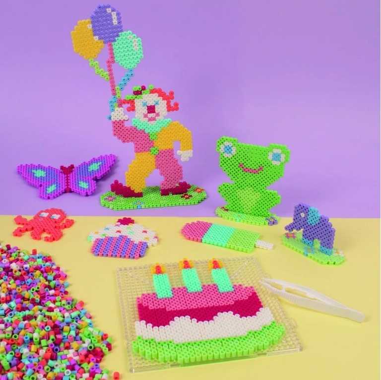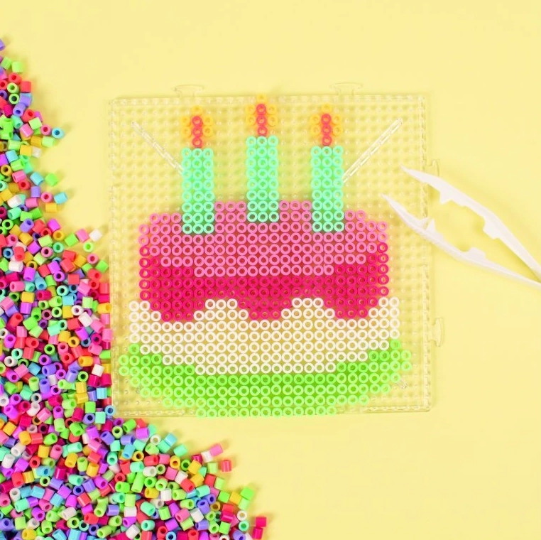 - Alles-in-één: vierkant pegboard, kleurrijke voorbeelden, strijkpapier en pincet.