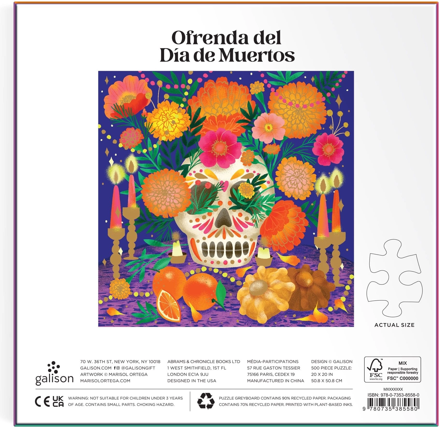 Geniet van een unieke legervaring met de vierkante puzzel met het motief Altaar voor de Dag van de Doden van 500 stukjes. Het elegante metallische effect benadrukt de kleuren en details; het eindresultaat meet 50,8 × 50,8 cm. In de verpakking zit een voorbeeldafbeelding voor makkelijker leggen.