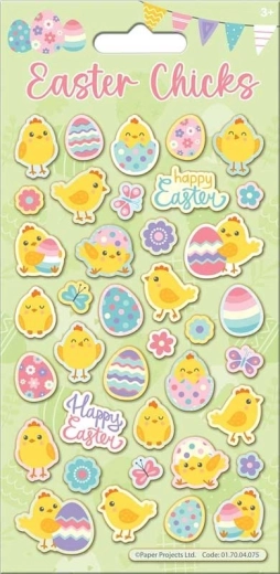 Vrolijke glinsterende stickers met paasmotieven laten eieren, schriften, ordners en je telefoon stralen. Ze zijn herbruikbaar, eenvoudig aan te brengen en laten een schone ondergrond zonder lijmresten achter.