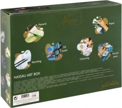 - Complete uitrusting: 2 grafietpotloden, puntenslijper, gum, 24 kleurpotloden, 24 waskrijtjes, 24 waterverfnapjes, 10 acrylverven, 15 zachte pastels, 2 penselen.