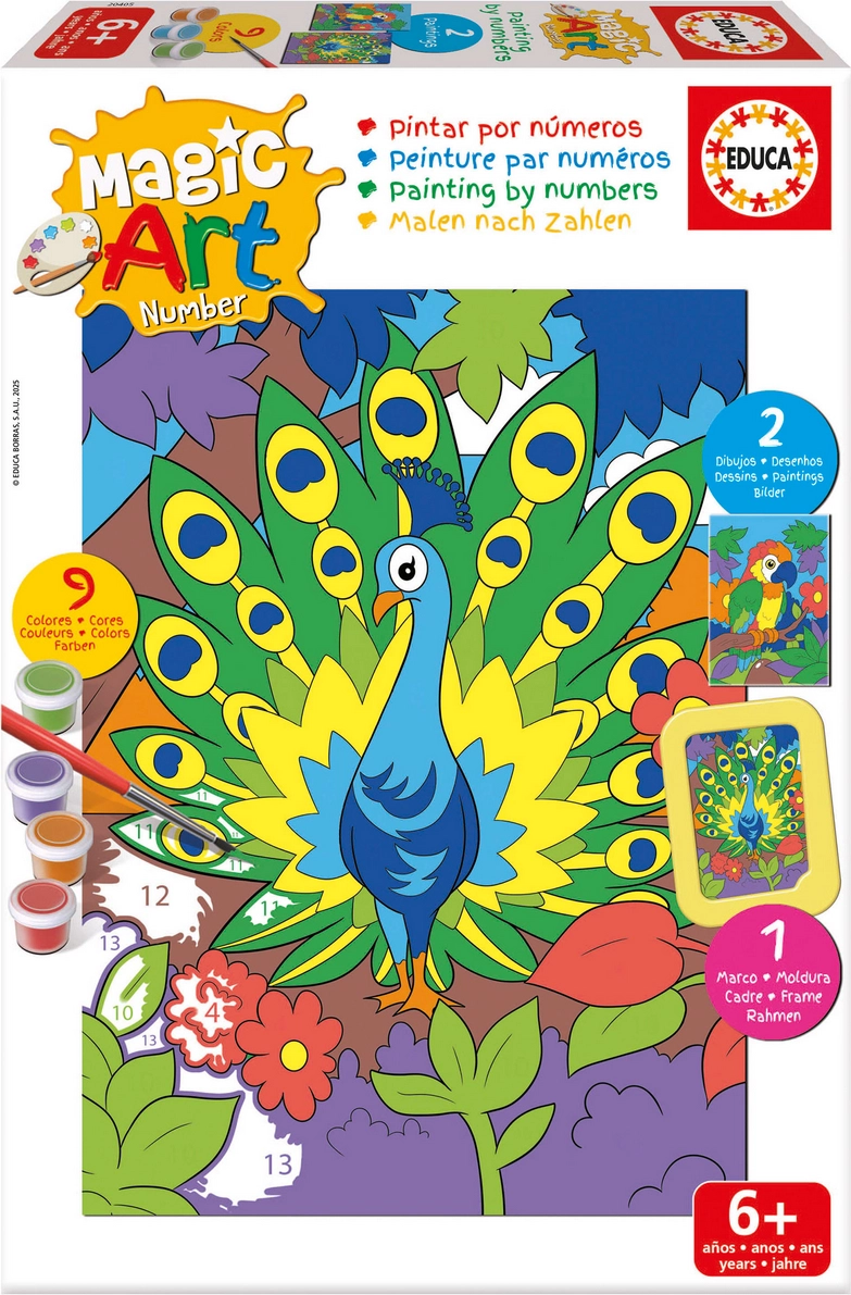 Ontdek de vreugde van creëren met de creatieve set schilderen op nummer van het merk Educa. Je schildert eenvoudig je eigen kunstwerken met motieven van een pauw en een papegaai, zelfs zonder eerdere ervaring. De activiteit stimuleert concentratie, fijne motoriek en kleurherkenning, en is bovendien ideaal voor ontspanning en plezier.