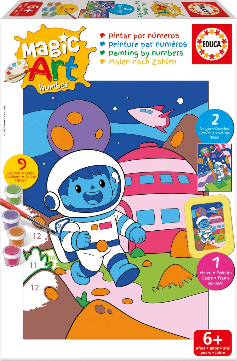Ontdek een ontspannende creatieve set voor jong en oud – Schilderen op nummer: Ruimte van EDUCA. Dankzij de genummerde vakjes op het voorbeeld is het maken van het schilderij eenvoudig en leuk. Deze set ontwikkelt concentratie, fijne motoriek en kleurherkenning, en geeft meteen een gevoel van succes.