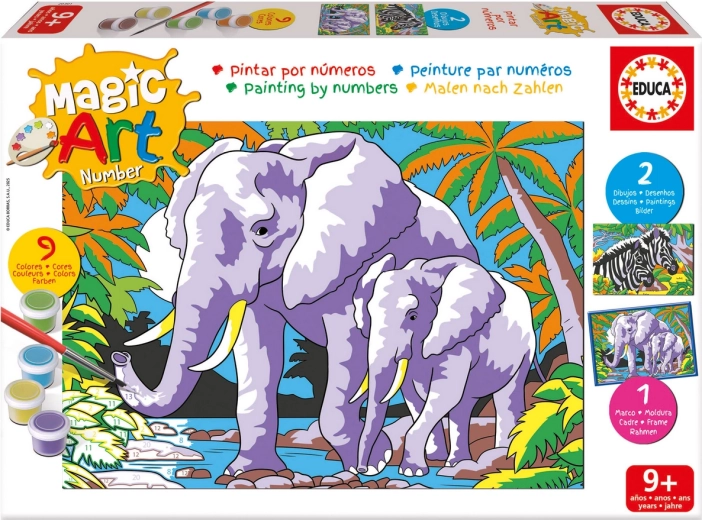 Ontdek het leuke en ontspannende schilderen op nummer met het thema olifanten en zebra’s van EDUCA. Dankzij de genummerde vlakken op het canvas is het maken van het schilderij eenvoudig, zelfs voor beginners, en biedt het creatieve bezigheid voor zowel kinderen als volwassenen. De activiteit ontwikkelt concentratie, coördinatievaardigheden en kleurherkenning – en dat alles op een speelse manier.