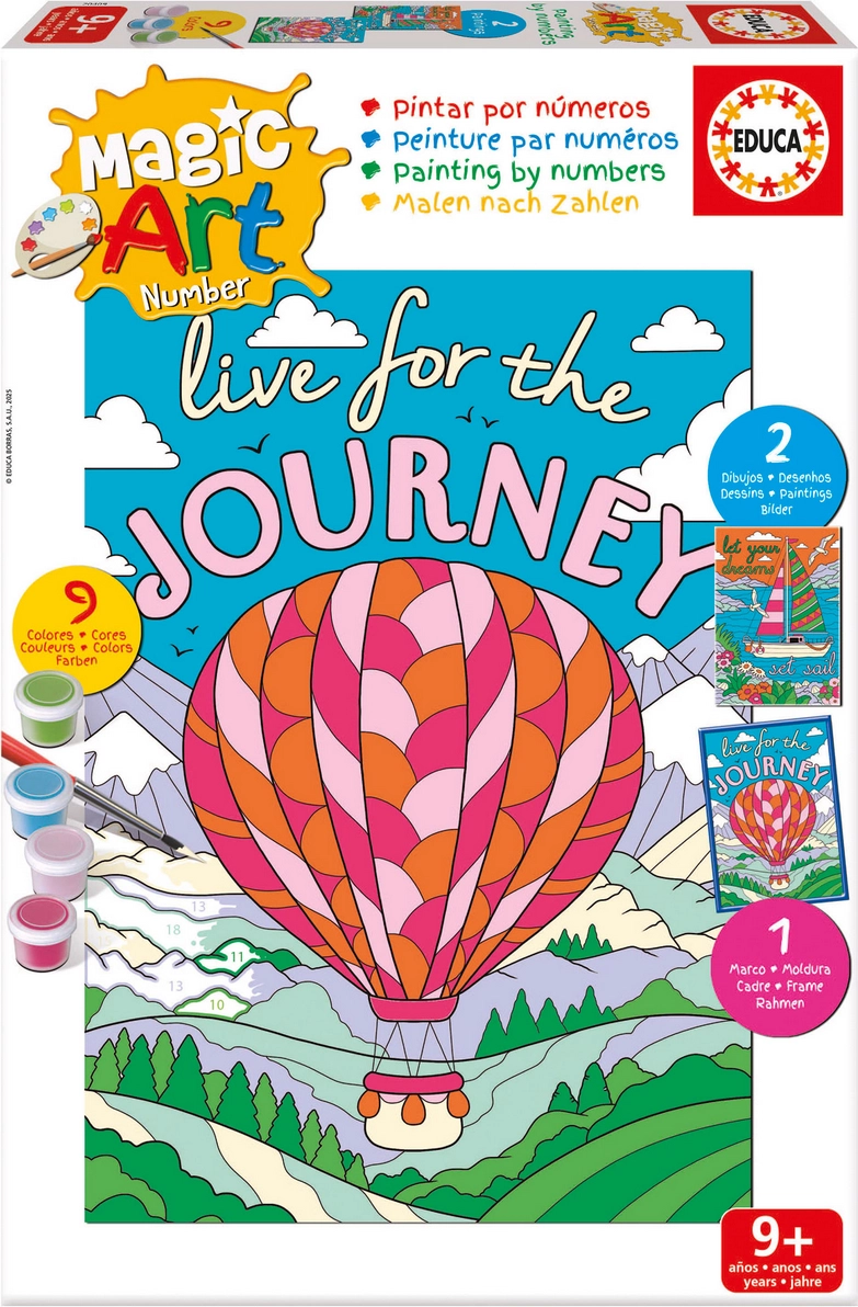 Deze creatieve set van EDUCA maakt schilderen eenvoudig en plezierig. Elk nummer op het canvas komt overeen met een specifieke kleur, zodat je moeiteloos een indrukwekkend beeld van een schip en een heteluchtballon creëert. Alles wat je nodig hebt is inbegrepen – van verf tot lijst – zodat je meteen aan de slag kunt.