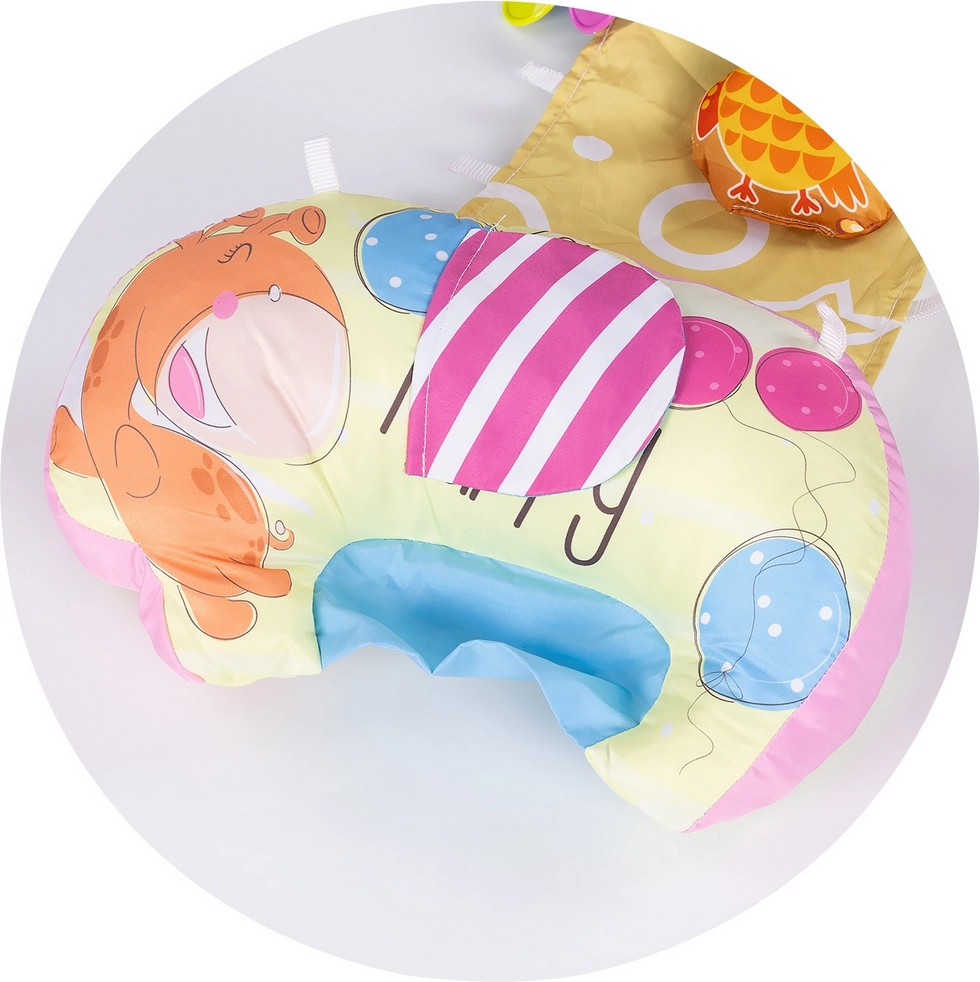 Het kussen is praktisch, gemakkelijk te onderhouden en perfect geschikt voor tummy time, lichte oefening en de eerste pogingen tot zelfstandig zitten. Kleurrijke motieven en hangspeeltjes (bij geselecteerde varianten) bevorderen de zintuiglijke stimulatie en de ontwikkeling van de fijne motoriek.