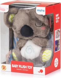 Stel je baby gerust met een zachte omhelzing en kalmerend licht met de pluchen koala van Chipolino. Deze knuffelkoala heeft een oplichtend buikje met ademhalingseffect, rustgevende melodieën en geluiden en is gemaakt van extra zachte stof die lief is voor de gevoelige huid. Hij is licht en compact, ideaal voor thuis en onderweg, en werkt op AA-batterijen.